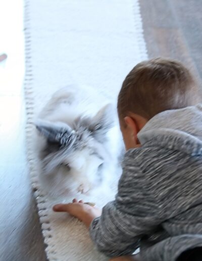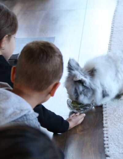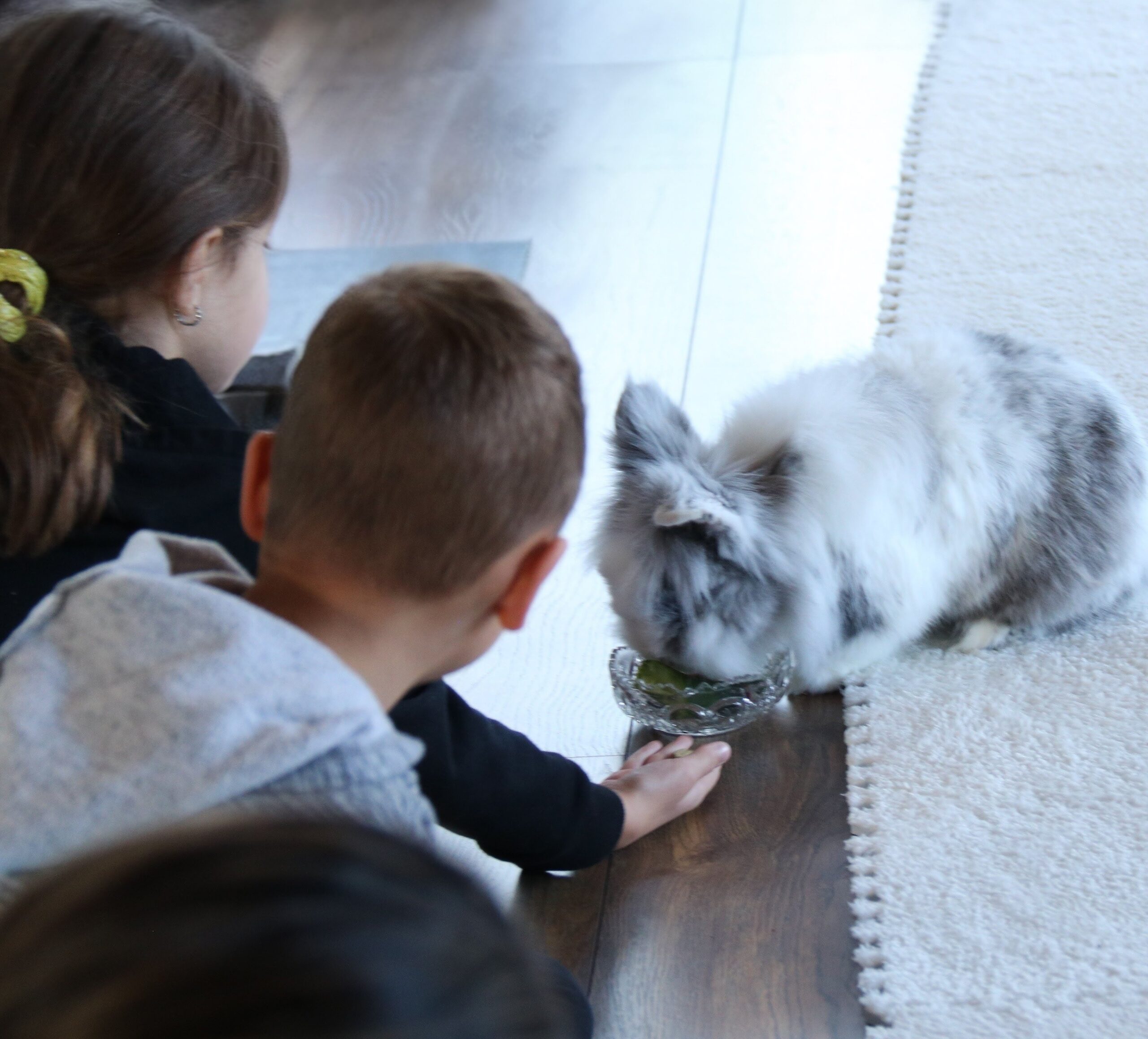 To support this peaceful environment, we ask that families attend together, with one adult present for approximately every 4–5 children. Adults help set the tone by modeling quiet observation and respectful interaction with the animals, which allows both the bunnies and the children to feel comfortable and at ease.