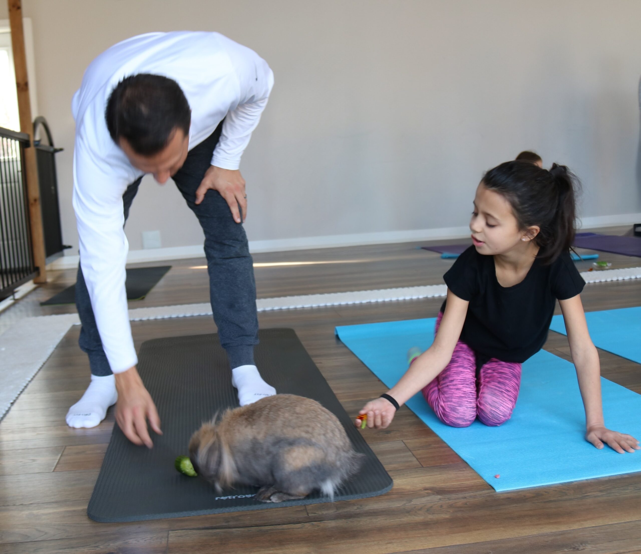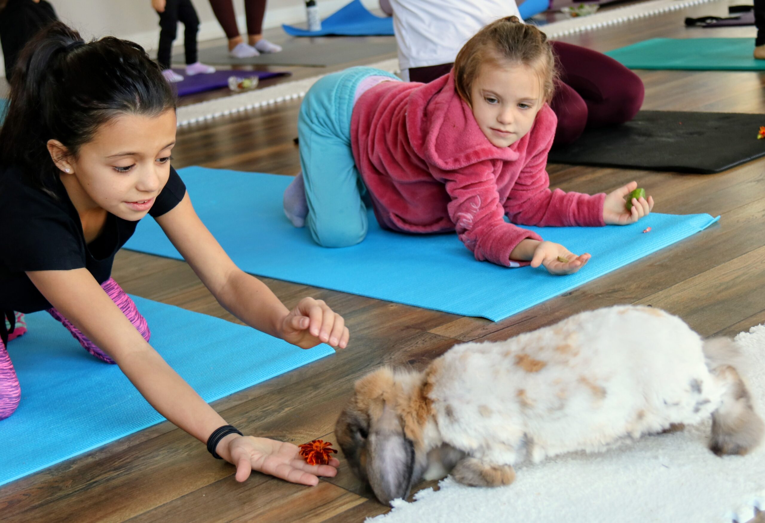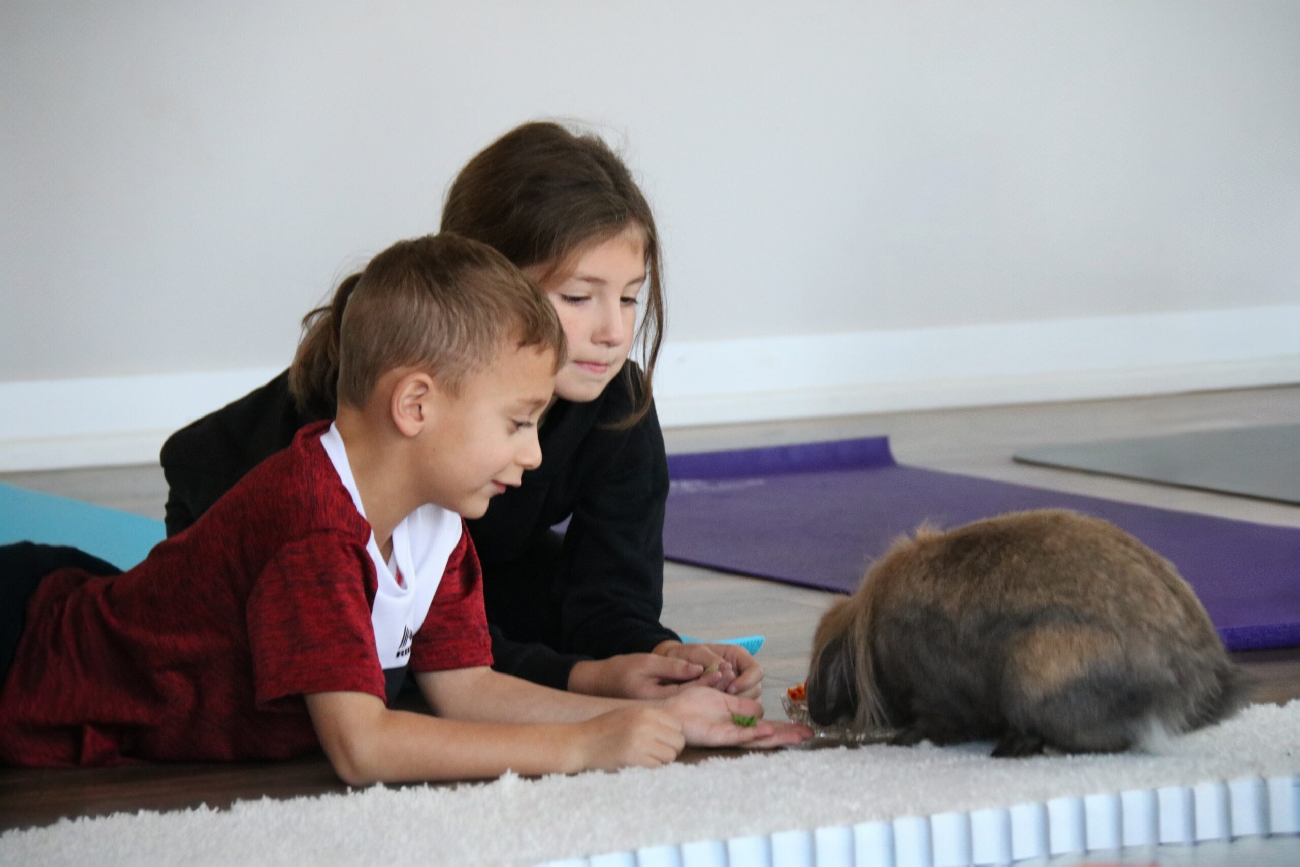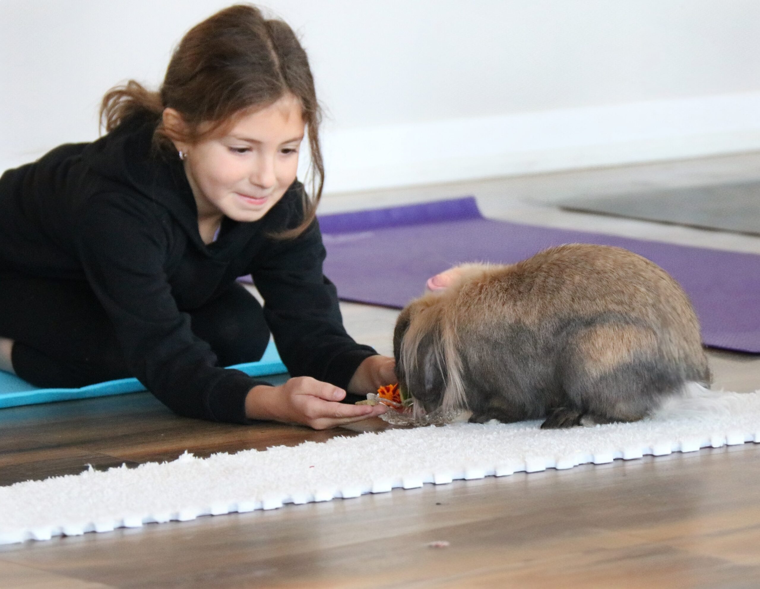 After the yoga portion of the session, families are welcome to spend a few minutes relaxing, hand feeding the bunnies, and taking photos with the bunnies if they choose.